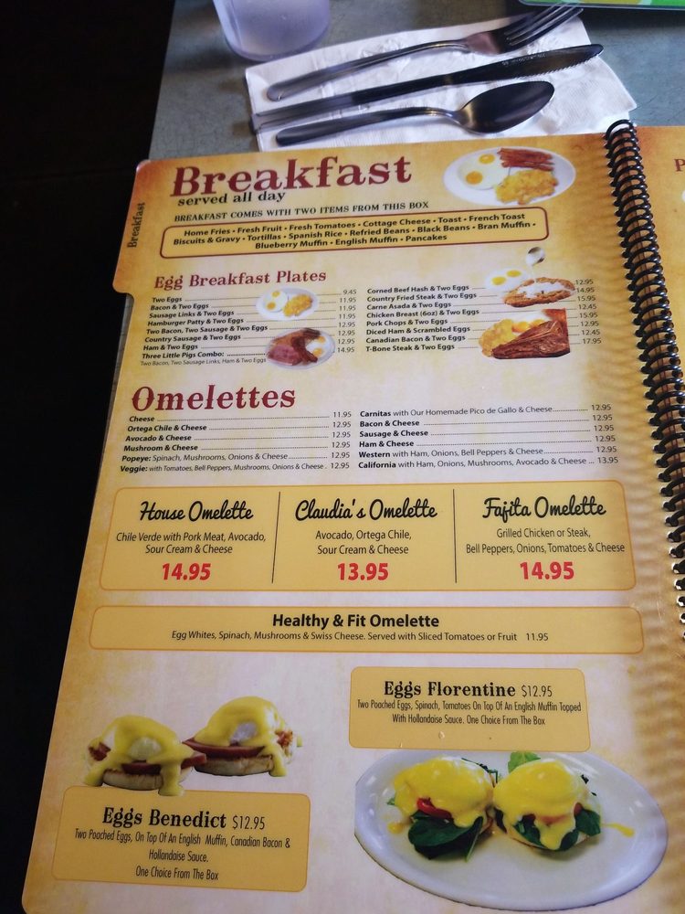 The Egg Breakfast Plates boast flavorful selections such as the Carne Asada and 2 Eggs, priced at $19.95, or the comforting 3 Little Piggies Combo for $18.95. For something classic, indulge in the beloved Eggs Benedict or the unique Eggs Florentine, both at $15.95.